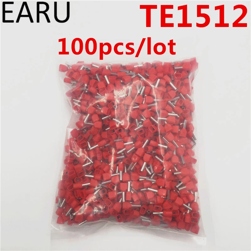 100 шт. E трубка TE1512 Тип двойной трубы изолированные двойной шнур холодно-пресс клеммный блок разъемов конца иглы многоцветный 2X1,5 mm2