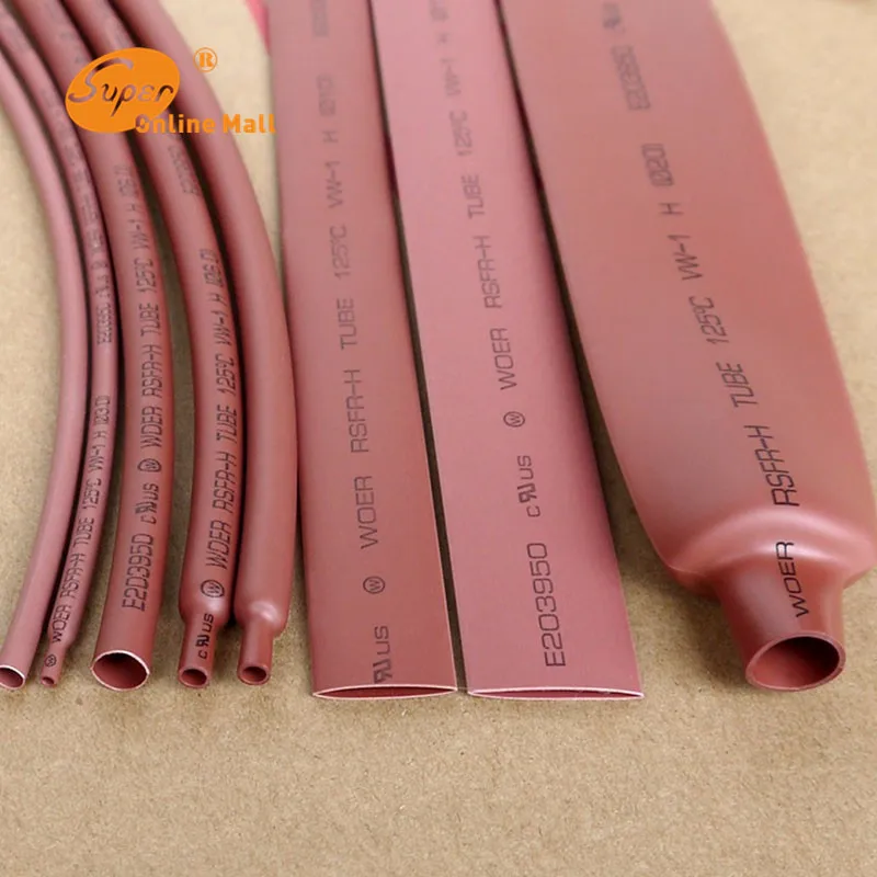 5 м/лот коричневый 2 мм-16 мм ассортимент Соотношение 2:1 полиолефин термоусадочная трубка кабельный рукав DIY