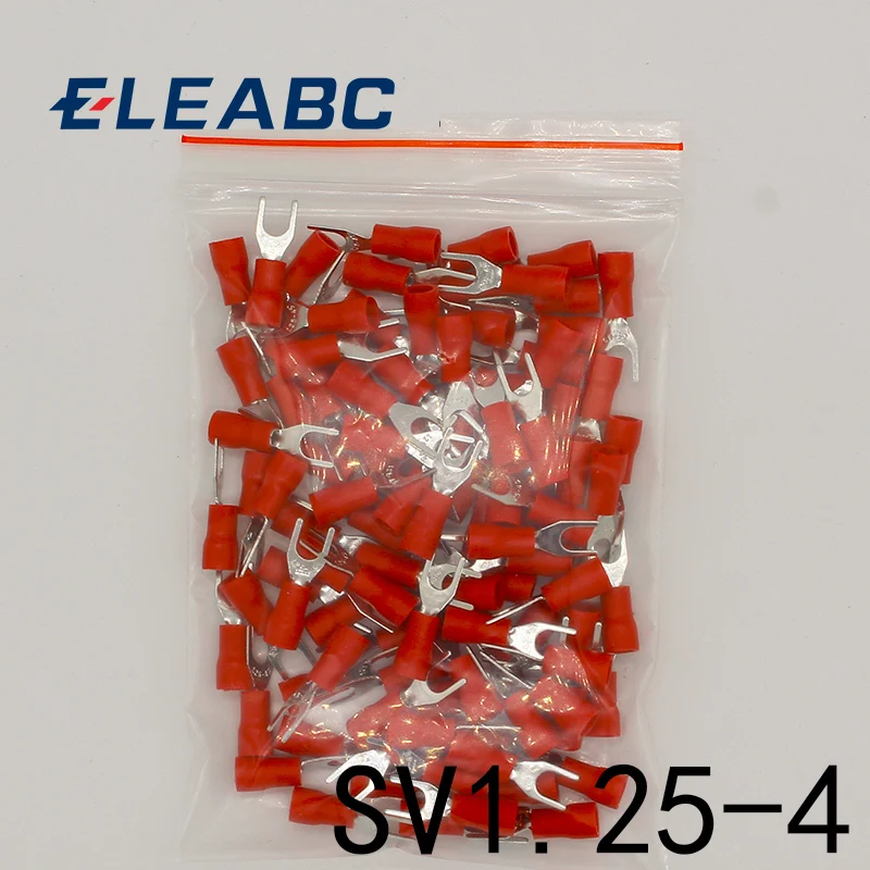 SV1.25-4 красный Furcate вилы Spade 22 ~ 16AWG провода обжимной прессованные терминалы кабель провода разъем 100 шт./упак. SV1-4 SV