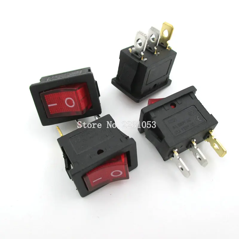 5 шт./лот 3 Pin AC 6A/250 V 10A/125 V красный свет ВКЛ-ВЫКЛ SPST оснастки в перекидной клавишный выключатель 15*21 мм KCD1-101