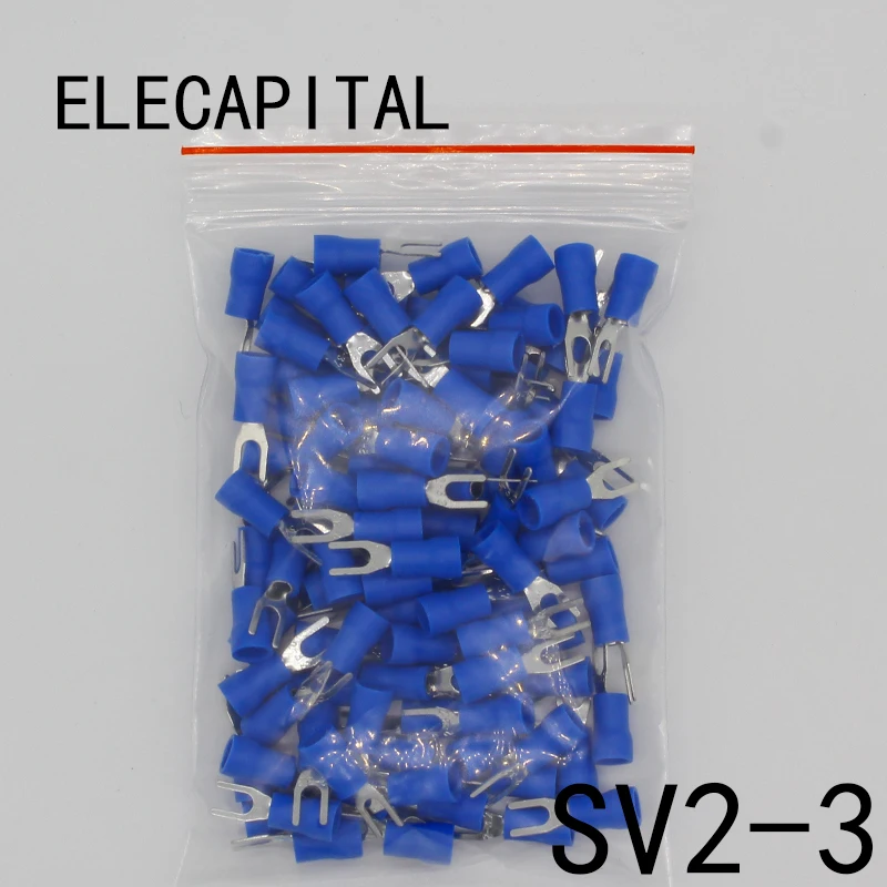 SV2-3 синий холодноштампованные зажимы кабель провода разъем 100 шт./упак. изолированные терминалы разъем для 22AWG-16AWG кабель 2,5-3 SV