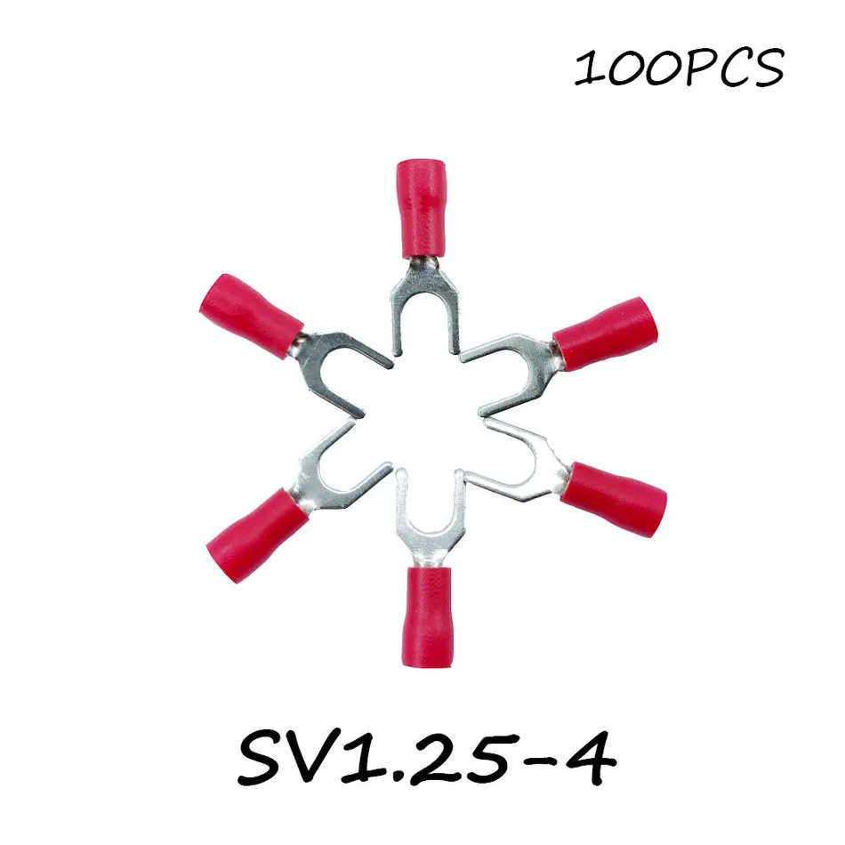 Sv1.25-4 100 шт./упак. Красный изоляцией Spade клеммный блок разъемов электрические Furcate рифлёная обжима кабеля Провода раздвоенный конец изоляции