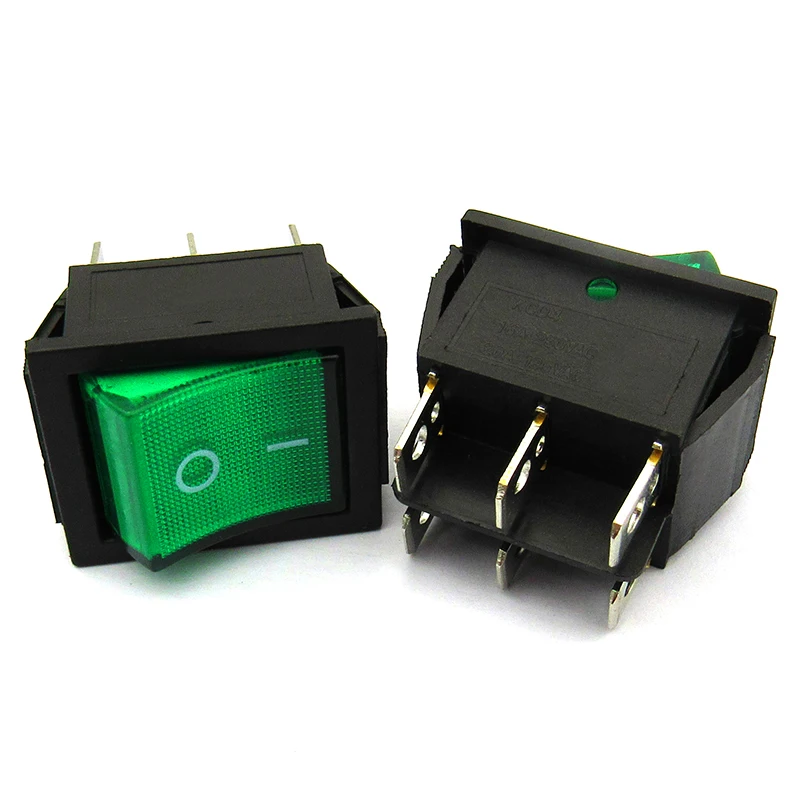 2 шт./лот KCD4 кулисный переключатель рокер кнопка питания 6 футов 16A 250 В 31x25 мм зеленый с подсветкой