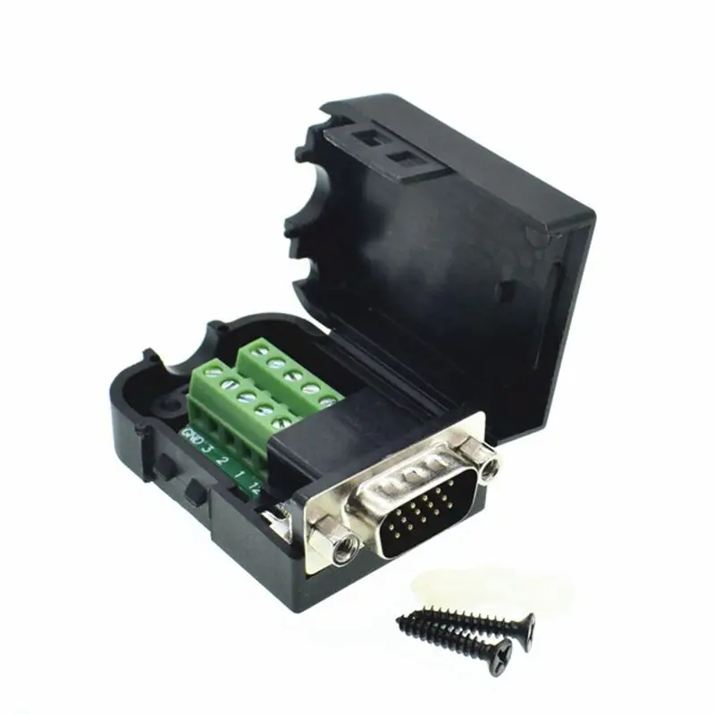 DB15 мужской гайка разъем адаптера D-SUB VGA терминал с Пластик крышка 3 + 6 кабель для передачи данных