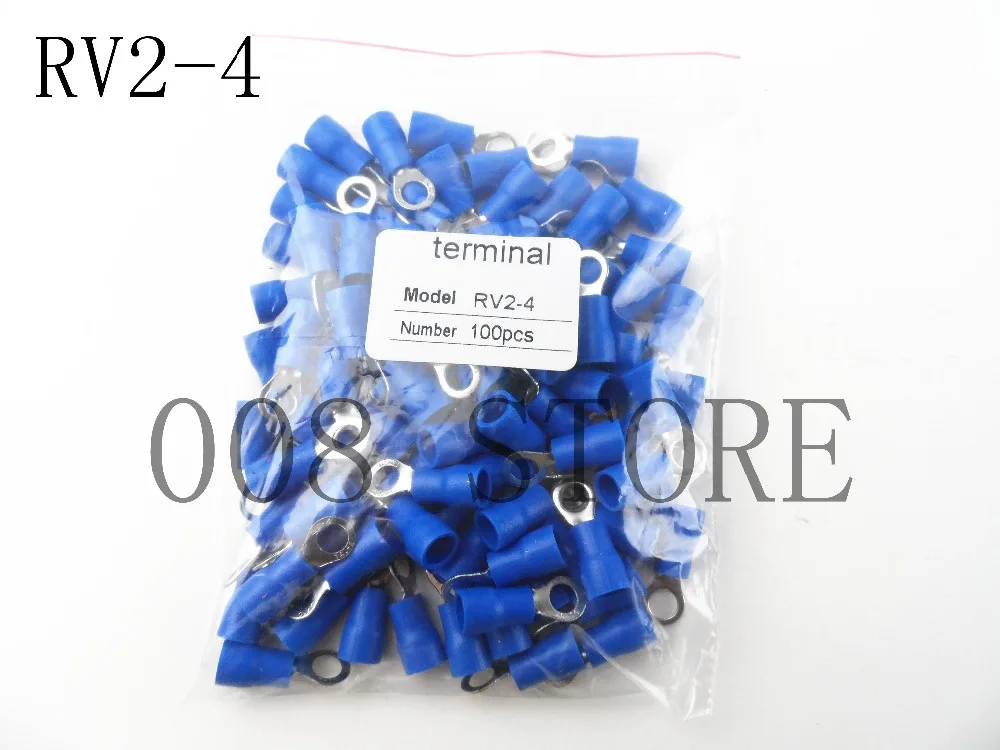 100 шт. RV2-4 синий изоляцией кольцо терминала электрические провода обжимной разъем AWG 16-14