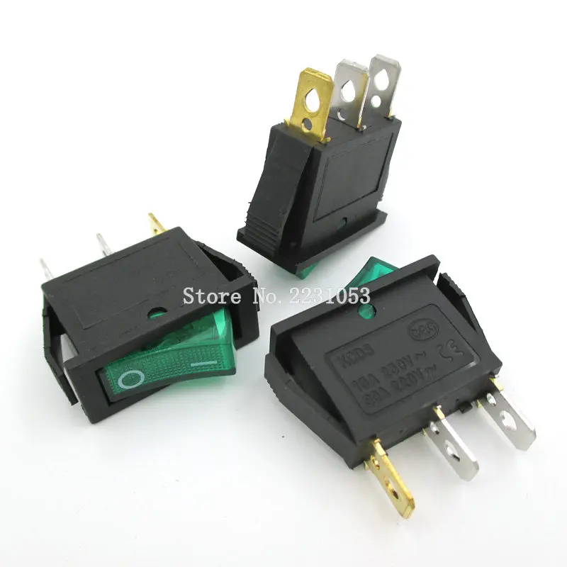 5 шт./лот зеленый светодио дный свет SPST 3 Pin ВКЛ/ВЫКЛ Лодка кулисный переключатель 16A/250 В 20A/125 В коммутаторы KCD3-101N KCD2