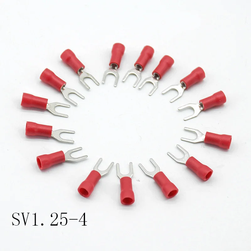 100 шт. SV1.25-4 красный вилы Spade 22 ~ 16 AWG провода обжимной прессованные терминалы кабель провода разъем SV1.25-4 s