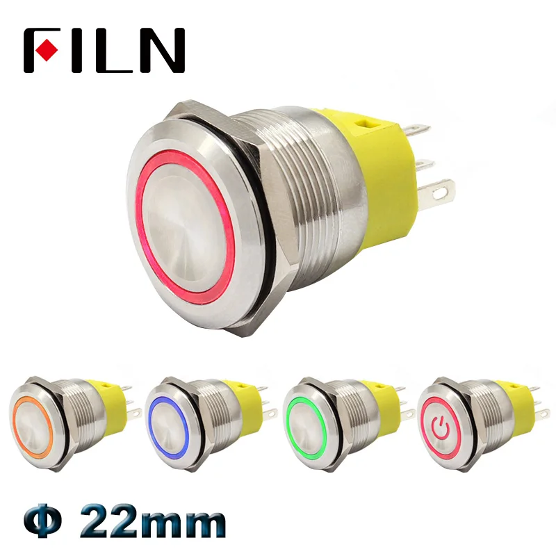 22 мм 12 В 24 В двухцветный трехцветный светодио дный светодиодный металлический кнопочный переключатель вкл. Выкл. Выключатель без фиксации П...