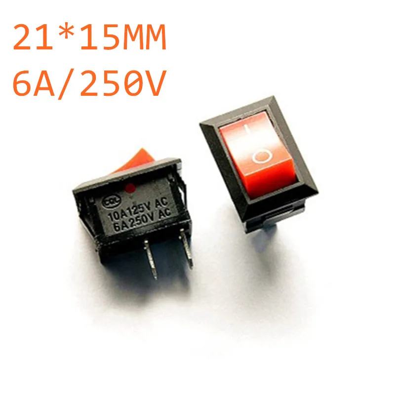10 шт. 21 мм * 15 мм красная кнопка мини-переключатель 6A-10A 110 В 250 В KCD1-101 2Pin кнопки включения/выключения перекидной переключатель красный