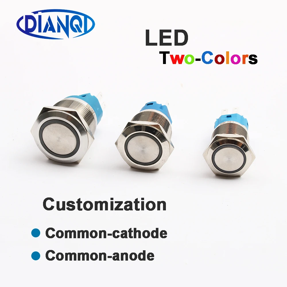 16 мм 19 мм 22 мм кнопочный переключатель двухцветный светодиодный общий катод общий анод новый тип 220 в 12 В 110 В 24 в 5 В