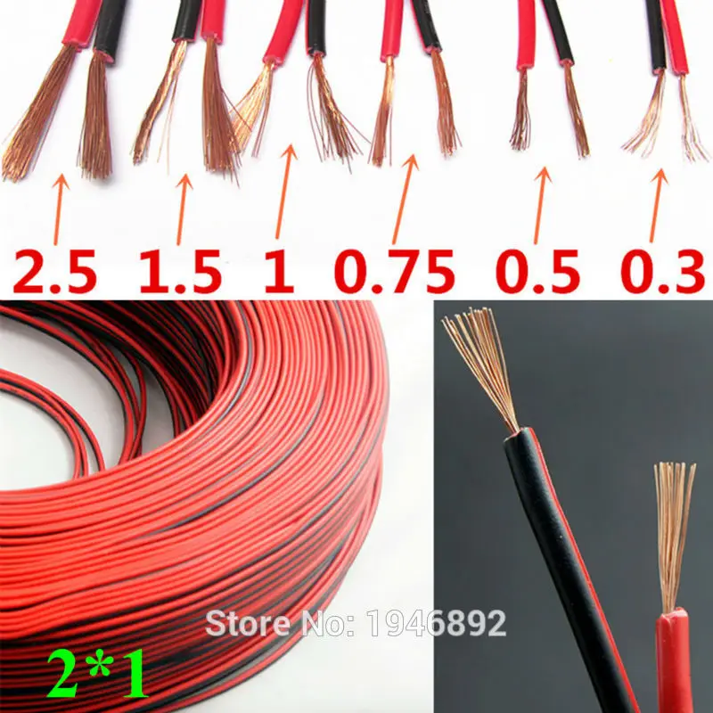 Rvb-2 * 1 квадратный Медь красный с черным цветом кабель параллельно внешних Провода Led Динамик кабель Электронный Мониторы шнур питания