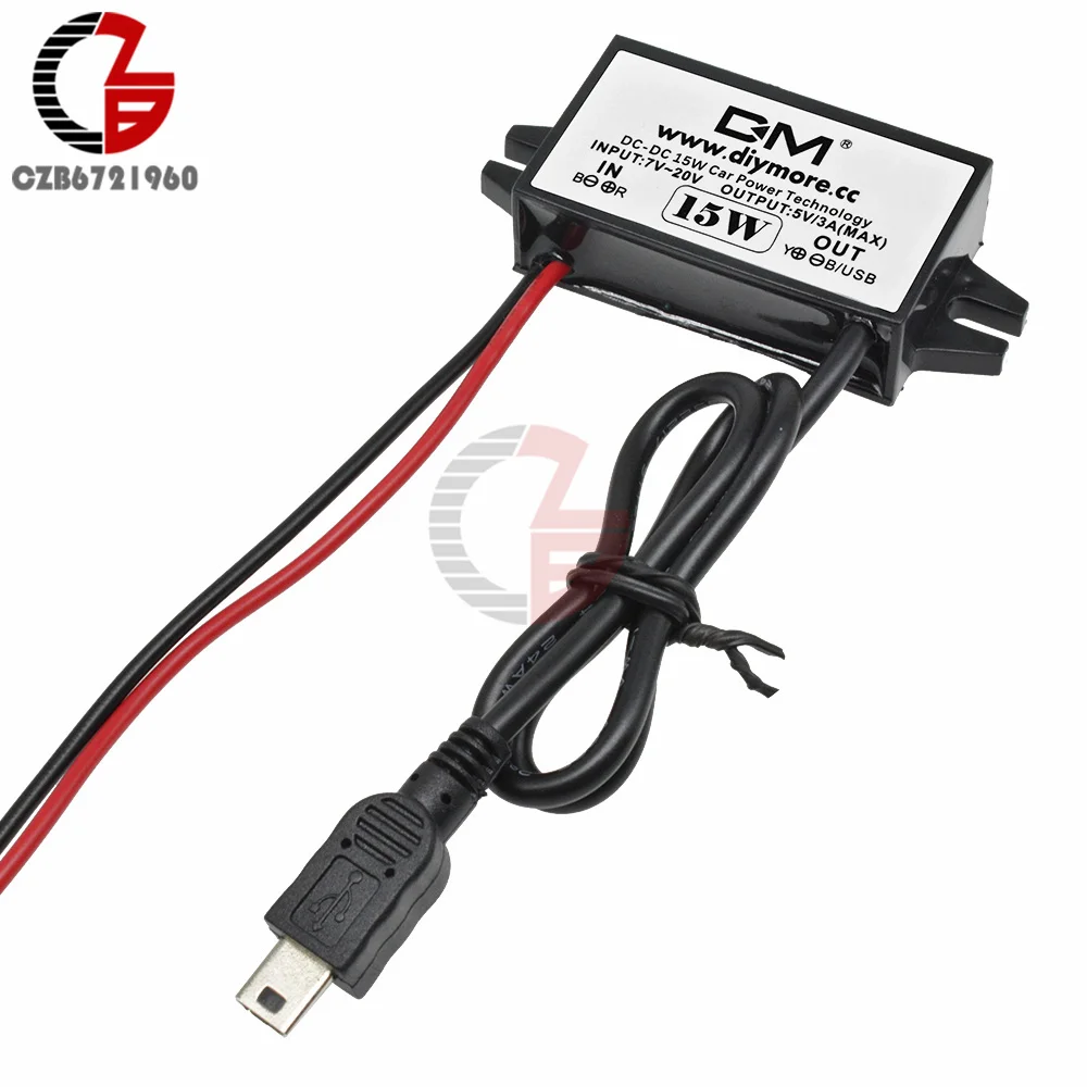 Mini USB DC-DC В 12 В до 5 В 3A 15 Вт двойной конвертер шаг подпушка адаптеры питания для автомобиля более Напряжение Ток тепла защиты