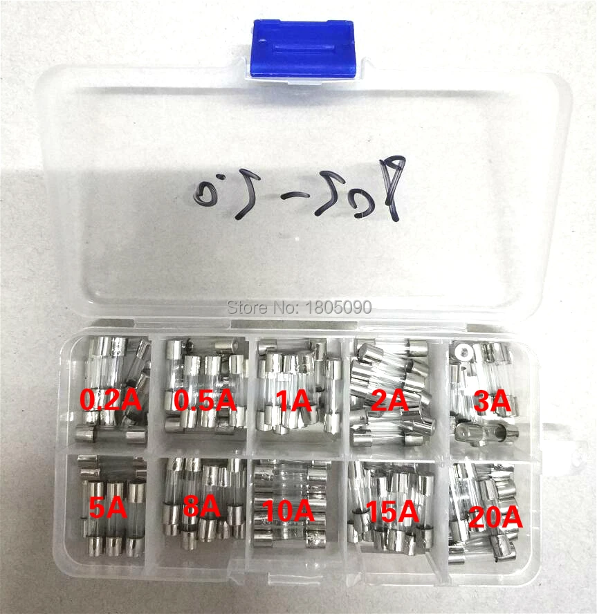 100 шт./кор. 5*20 мм Стекло предохранитель Mix набор с коробкой 0.2A 0.5A 1A 2A 3A 5A 8A 10A 15A 20A 5x20 мм электрические Ассорти предохранитель Amp Fast-blow