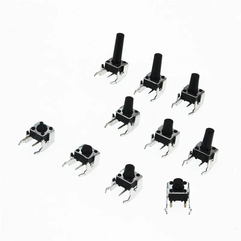 50 шт. PCB мгновенные Тактильные Такт кнопочный переключатель под прямым углом с Стент 6x6x4,3/5/6/7/8/9/12 мм