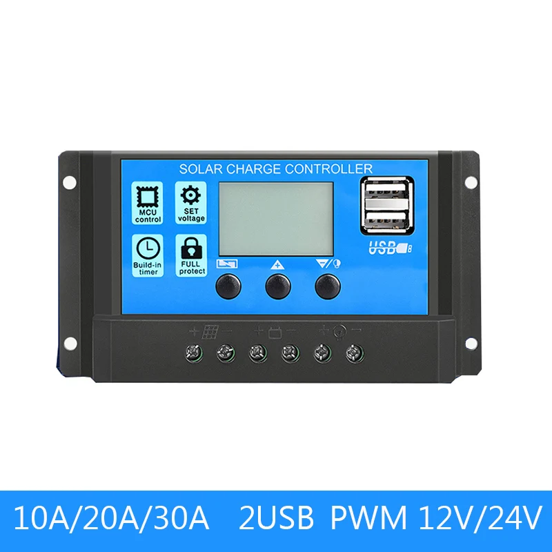 30A/20A/10A 12V 24V Авто за максимальной точкой мощности, Солнечный контроллер заряда ШИМ-контроллеры ЖК-дисплей Dual USB 5V Выход обжимной инструмент д...