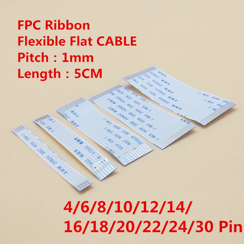 10 шт. плоский гибкий кабель с ПВХ изоляцией FFC FPC ЖК-дисплей кабель в том же направлении AWM 20624 80C 60V VW-1 1,0 мм 5 см 4/6/8/10/12/14/16/18/20/24 /26/30Pin