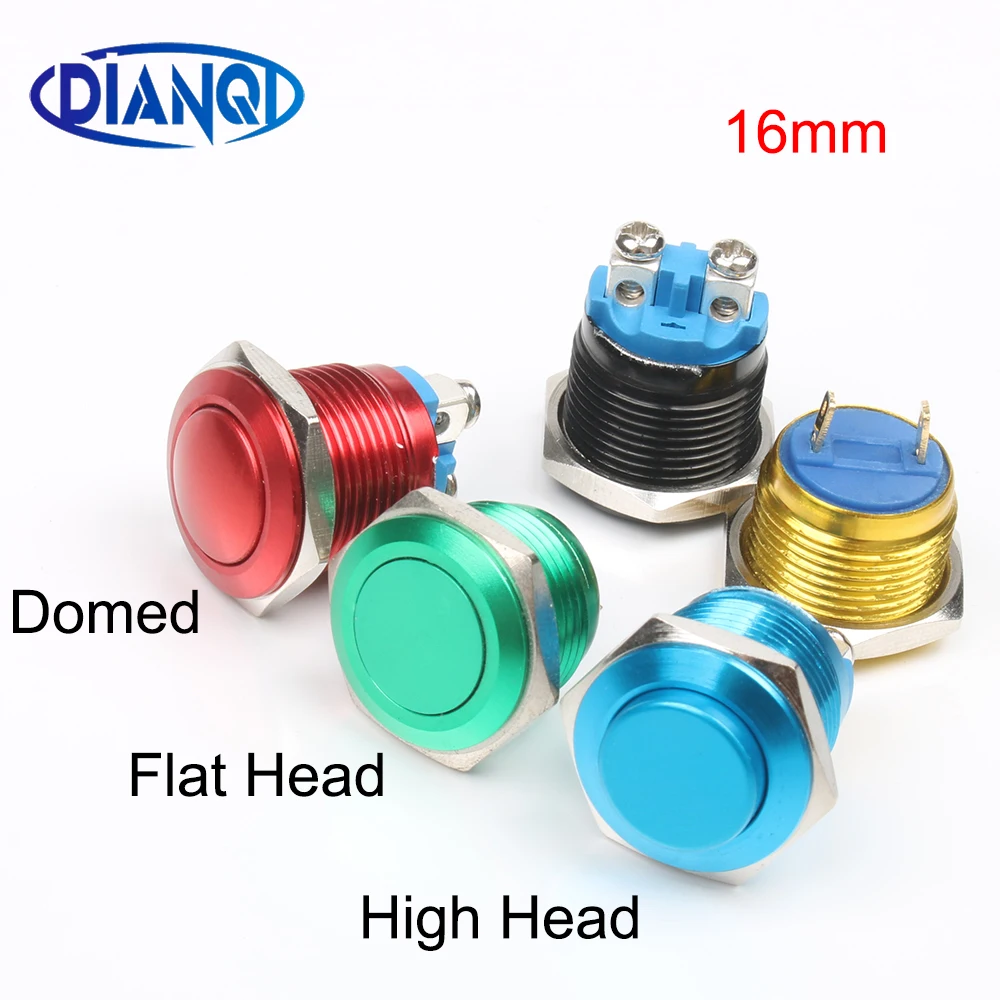 16 мм Металл латунь кнопочный переключатель высокий круглый Мгновенный 1NO Автомобильная кнопка для нажатия винтовой терминал 16QYGT. F.L