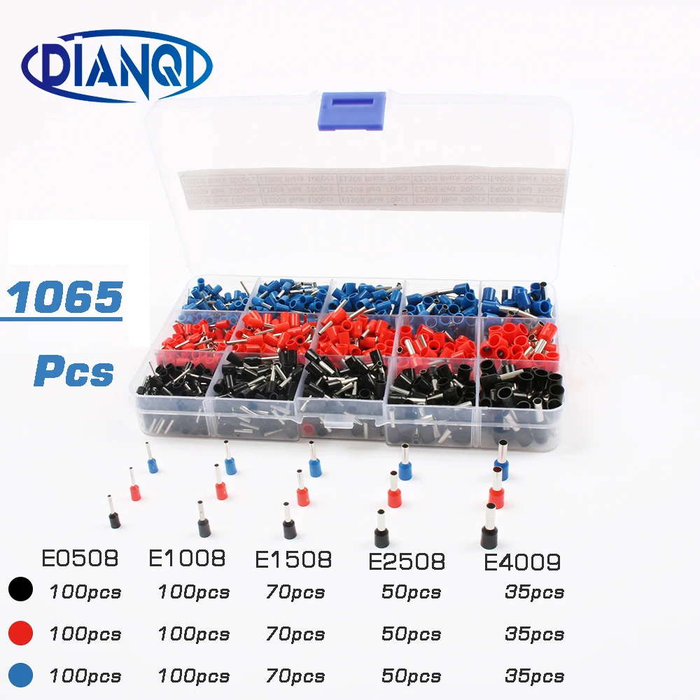 1065 шт./компл. 3 цвета 22 ~ 12AWG провода медь обжимной разъем Изолированный Шнур булавки Конец Терминал Bootlace cooper наконечники комплект латунь