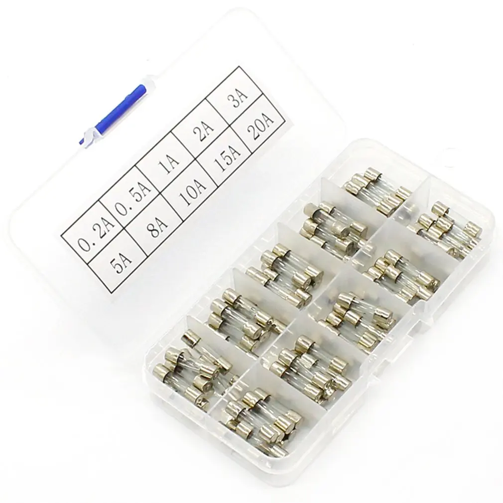 100 шт./компл. 5x20 мм быстродействующие Стекло Трубка Набор предохранителей Amp 0,25/0,3/0,5/0,75/1/2/3/4/5/6A быстродействующие предохранители в ассортимен...