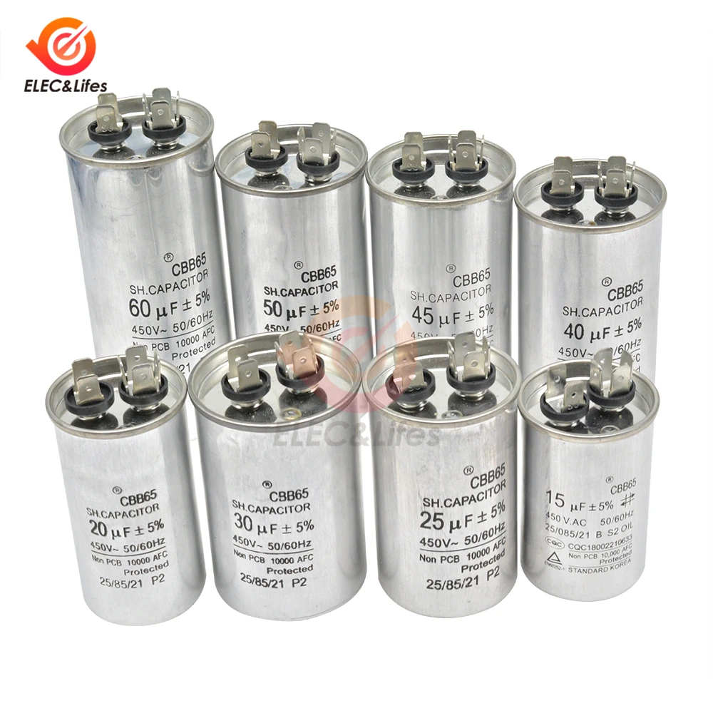 AC450V 50/60Hz металлический цинк алюминий пленочный конденсатор CBB65 запущенный двигатель компрессор для кондиционера конденсаторы 15μF 20μF 25μF 30μF...