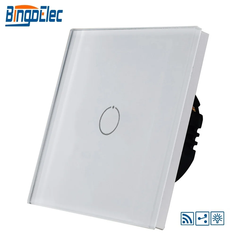 BINGOELEC ЕС/Великобритания, черный закаленное стекло панель 1 gang 2way Диммер дистанционный выключатель света, сенсорный настенный выключатель, ...