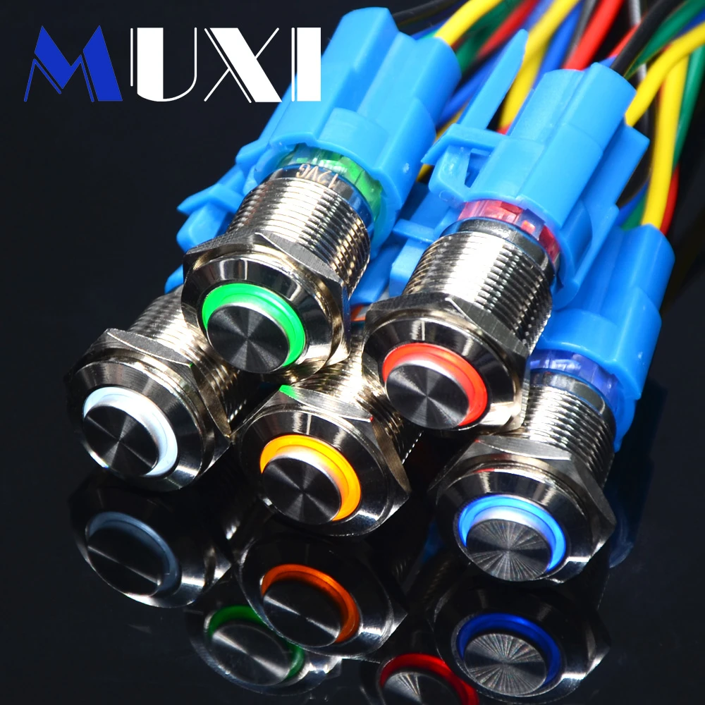 1 шт. 12 мм Кнопка запуска питания с светодио дный 12 В в В/24 В 2A фиксация самоблокирующимся IndicationMetal Водонепроницаемая кнопка переключателя с п...