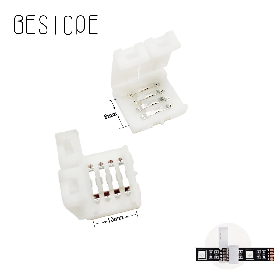 10 шт. 4 pin 8 мм Светодиодная лента светового разъема 10 мм Печатная плата полоса для прокладки без пайки легкая Соединительная Пряжка для 2835 5050 ...