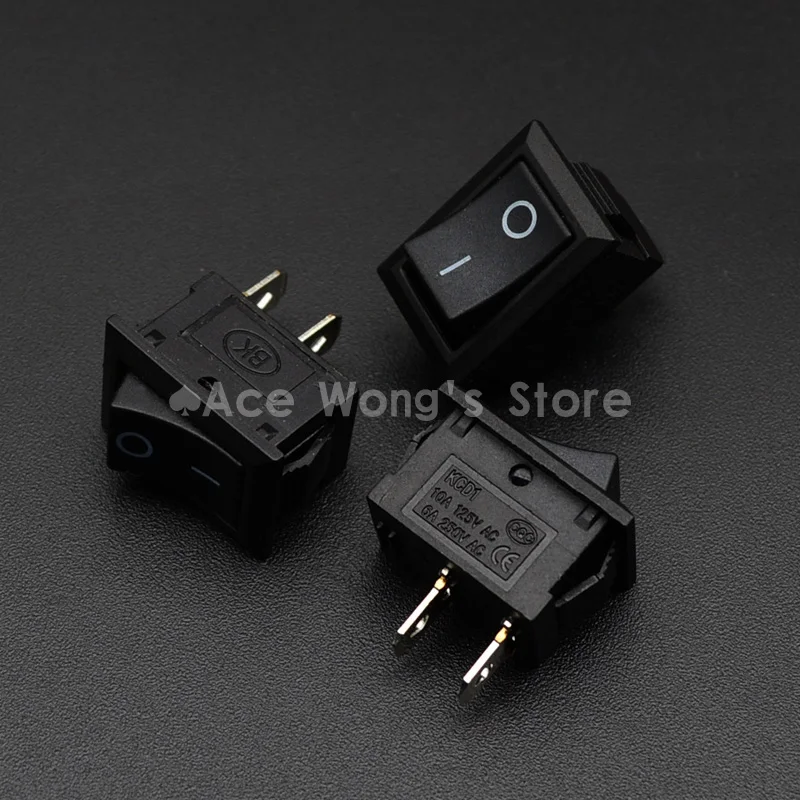 10 шт. KCD1-101 AC 6a 250 В 2 Булавки on/off I/O SPST оснастку в мини черный кнопка лодка кулисный переключатель 15*21 мм