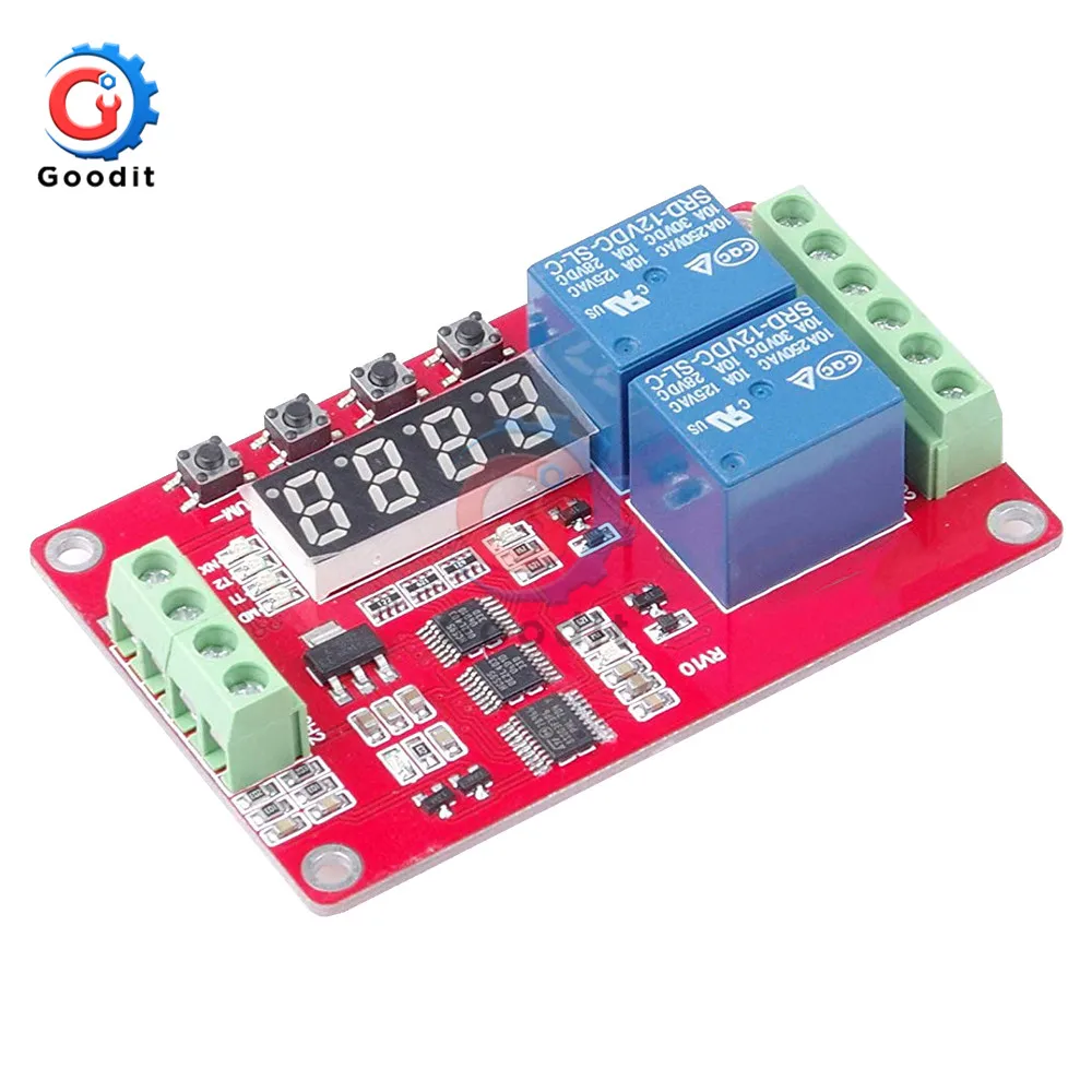 DC 5В/12В/24В 10A 2-канальный Многофункциональный релейный модуль цикл переключатель таймера задержки самозапирающийся программируемый триггер...