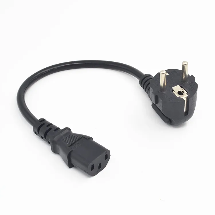 Короткий Европейский 3-контактный штырьковый разъем 0,2 м/1 фута для IEC 3-контактный разъем, силовой провод Schuko для C13 шнур питания