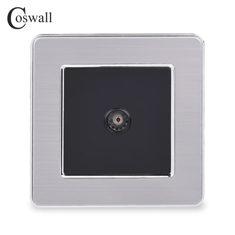 COSWALL 1 Gang женский ТВ разъем Роскошные розетка для стены нержавеющая сталь матовый серебристый рамки панель