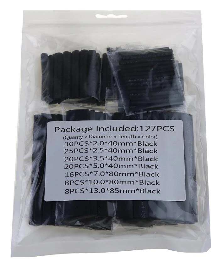 127 шт. Черный экологически чистого огнезащитных термоусаживаемые трубки посылка