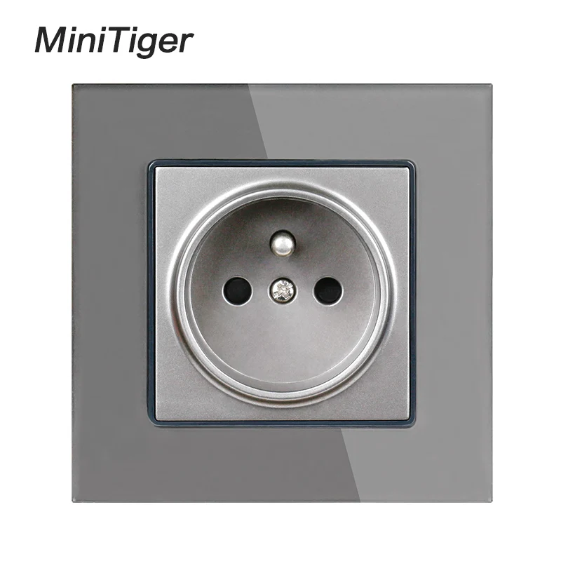 Minitiger Хрустальная стеклянная панель настенная розетка заземленная 16А французский стандарт электрическая розетка черный белый золотой сер...