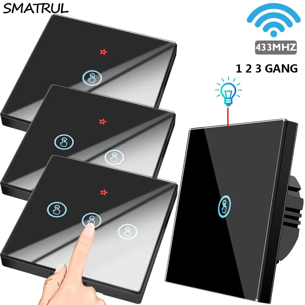 SMATRUL 1 2 3 банда умный беспроводной сенсорный выключатель светильник 433 мгц рч пульт дистанционного управления стеклянный экран настенная па...