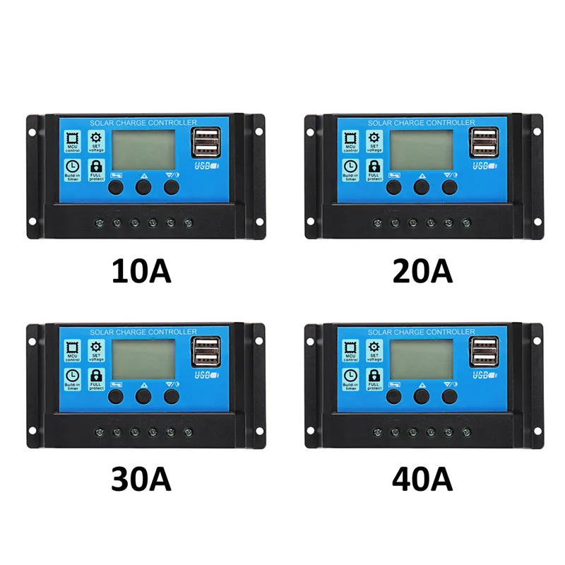 10/20/30/40A 12 В 24 В Авто контроллер заряда ШИМ с ЖК-дисплей Dual USB 5 В Выход солнечных батарей Панель регулятор PV дома