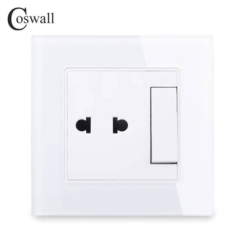 COSWALL 2 отверстия Универсальный розетки с 1 Gang Way On/Off 16A выключатель света Кристалл Закаленное стекло панель