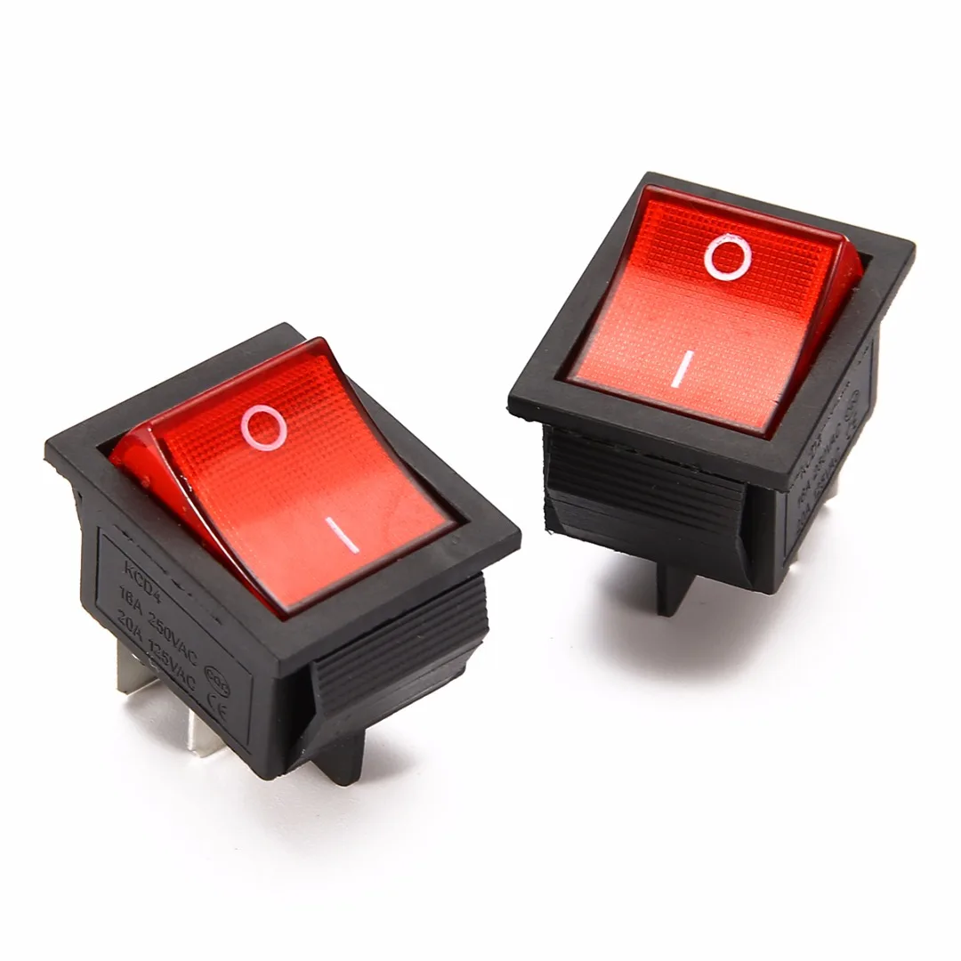 5 шт. красной подсветкой свет кулисный переключатель с 4 Pin ВКЛ/ВЫКЛ 2 Позиция 16A/250 В 20A/125 В KCD4-201