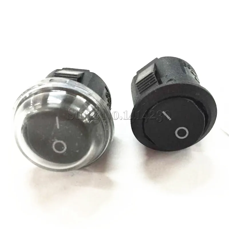 10 шт. маленький круглый перекидной клавишный выключатель Черный Мини Круглый черный 2 Pin ВКЛ-ВЫКЛ 3A/250 В 6A/125VAC с прозрачной водостойкой крышко...