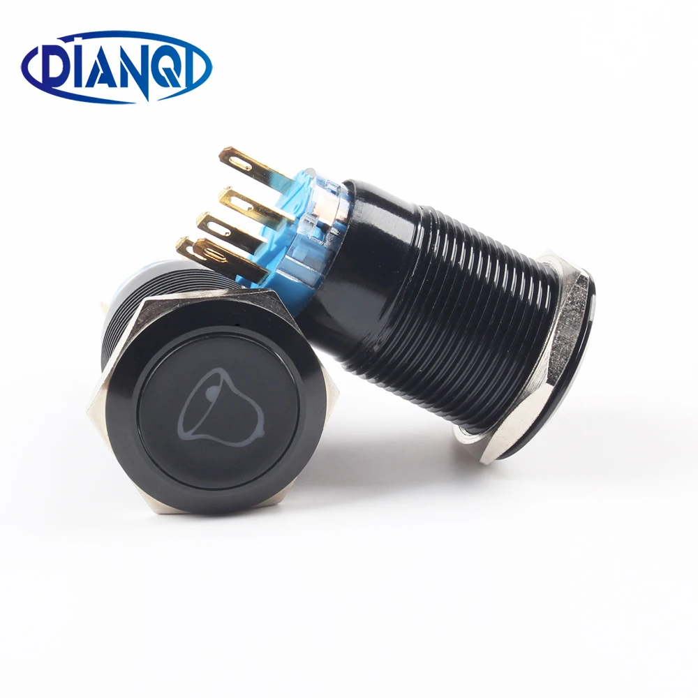 19 мм алюминиевый Мгновенный Переключатель автомобильный звонок кнопка переключатель металлический светодиодный логотип Кнопка сброса пе...