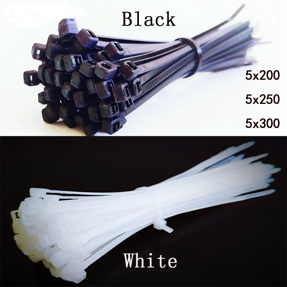 Ширина 5 мм самозамок Нейлон Кабельные стяжки 100 шт. белый и черный пластмассовая застежка-молния проволочная вязка UL сертифицированный каб...
