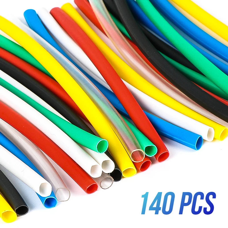 Полиолефиновая в ассортимента термоусадочные трубки изоляционные, термоусадочные трубки обмотка для проводов, кабелей 140 шт 7 видов цветов ...
