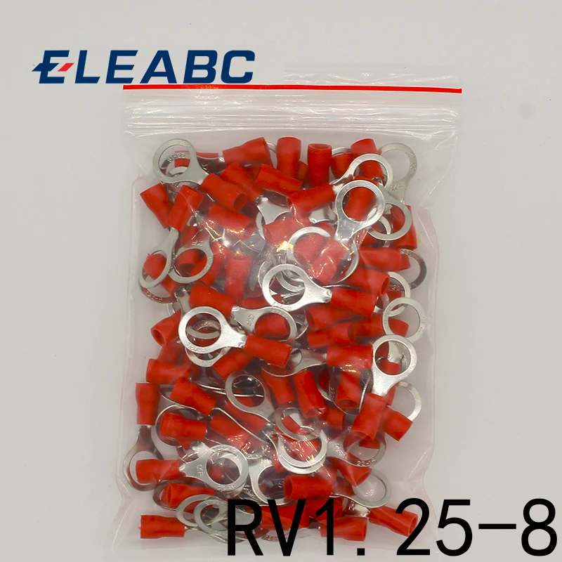 RV1.25-8 красный круговой 22-16 AWG 0,5-1.5mm2 изолированный Кольцевой зажим Соединительный кабель с разъемом кабеля разъем провода 100 шт./упак. RV1-8 RV
