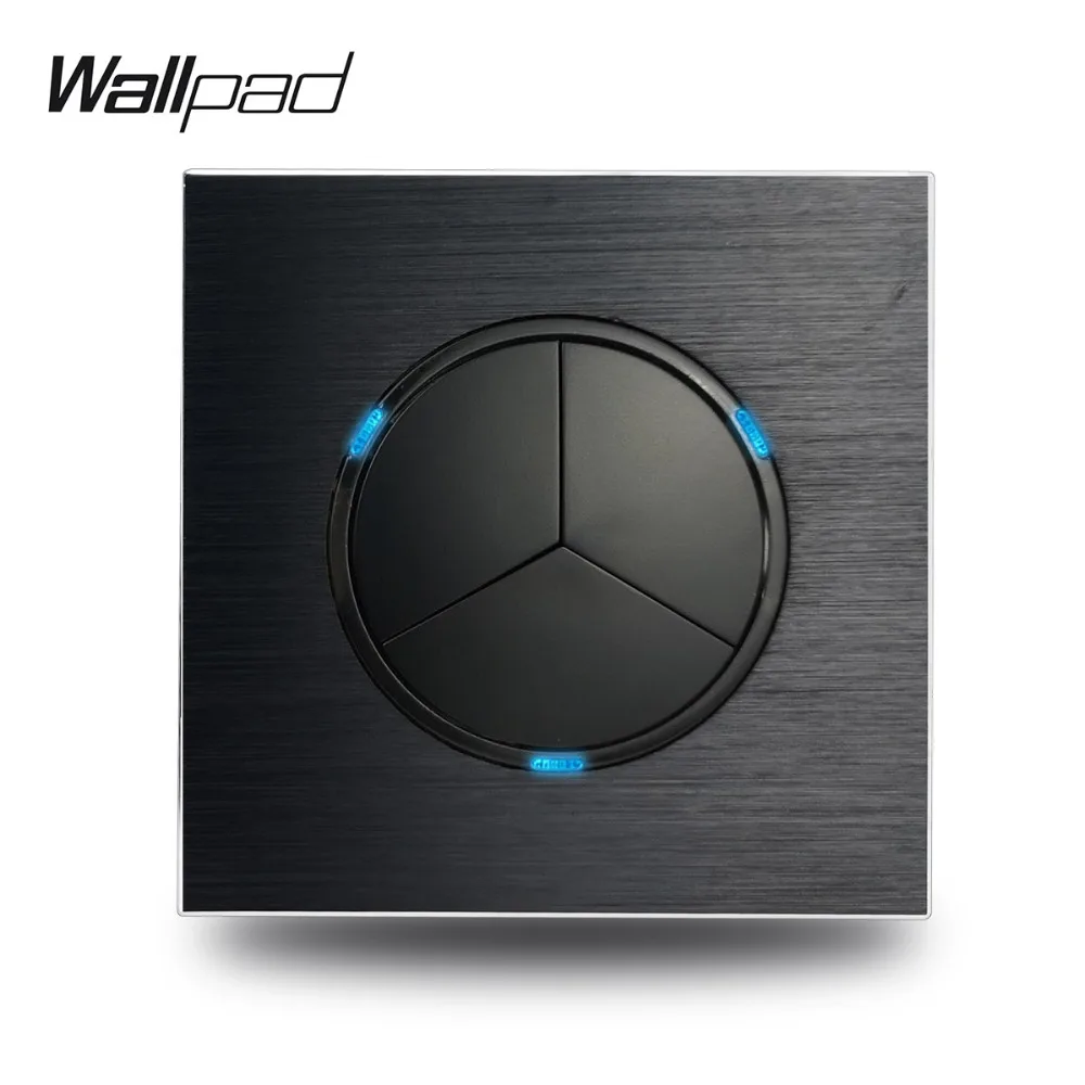 Адррес Wallpad L6 Атлас Черный Металл 3 банды 1 способ настенный светильник случайный нажмите переключатель Алюминий пластины с синий светодиод...