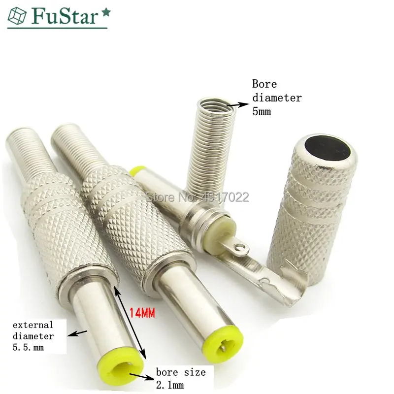 5 шт. 5,5x2,5 мм DC разъем питания штекер металлический разъем адаптер с желтой головкой 5,5*2,5 мм 12 В DC мониторинг электропитания проводка