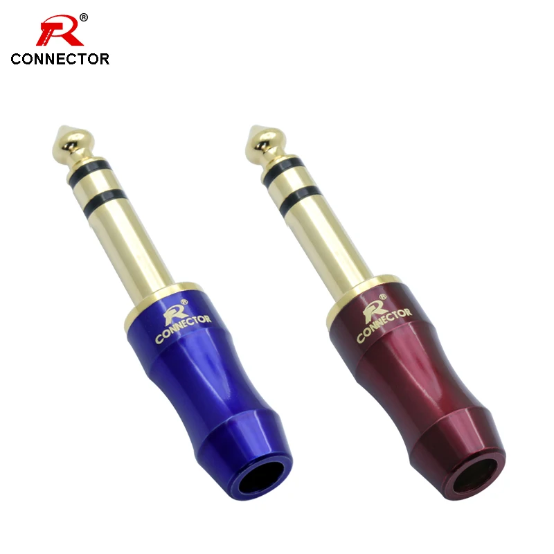 2 шт. отличное мм 1/4 мм jack 6,35 "штекер стерео 3 ядра Jack мм 6,3 синий + красный цвет с К 24 к позолоченные головы медь трубки