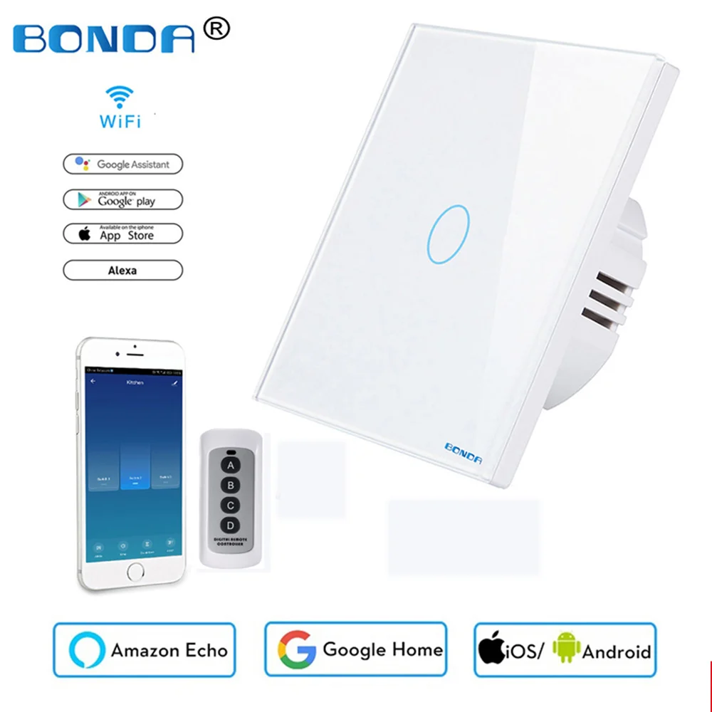 BONDA стандарт ЕС граффити умный WiFi + RF сенсорный переключатель + alexa Голосовое управление Умный настенный WiFi адаптер AC 110v250v пульт дистанционного управления