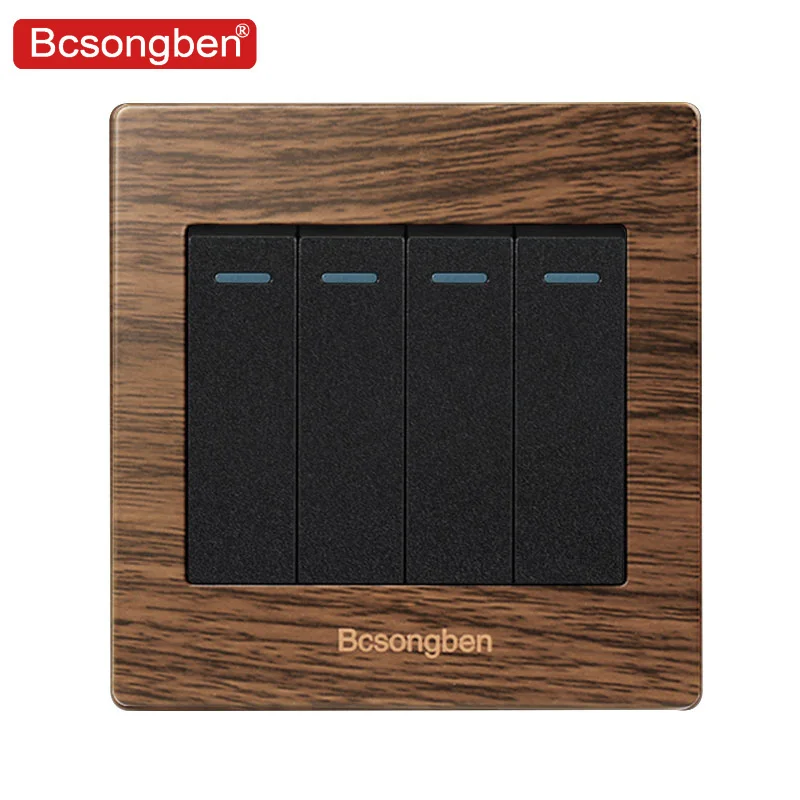 Bcsongben Роскошные Кнопка настенный выключатель 4 Gang 2 Way выключатель света прерыватель матовый панель из древесного волокна 10A AC 110 ~ 250 В