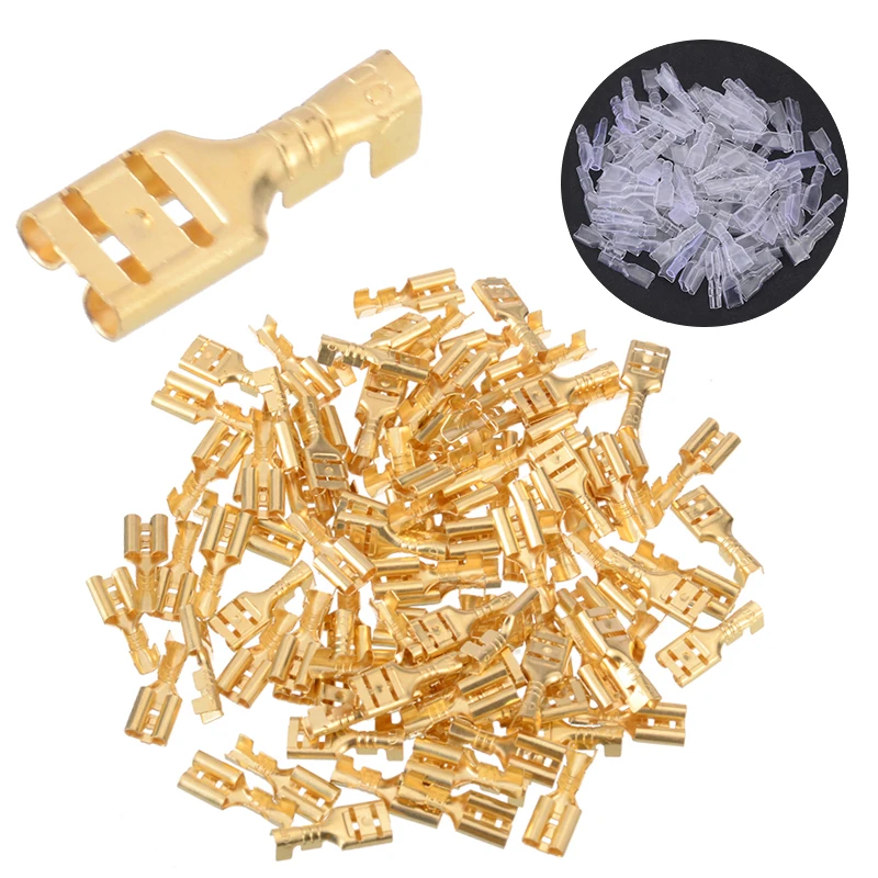 100 шт. Латунь Женский Spade Разъемы 4,8 мм обжимной вывод с изоляционные втулки 22-16AWG 0,5 мм Толщина