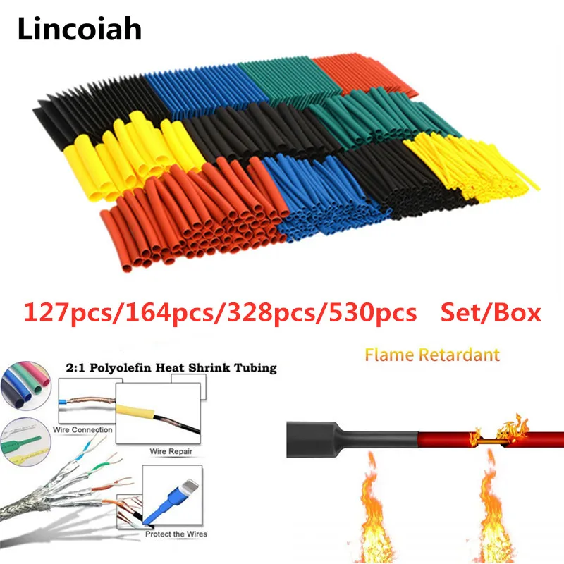 127 шт/164 шт/328 шт/530 шт Набор/коробка Полиолефиновая усадка Ассорти термоусадочная трубка провод кабель изолированный комплект трубок