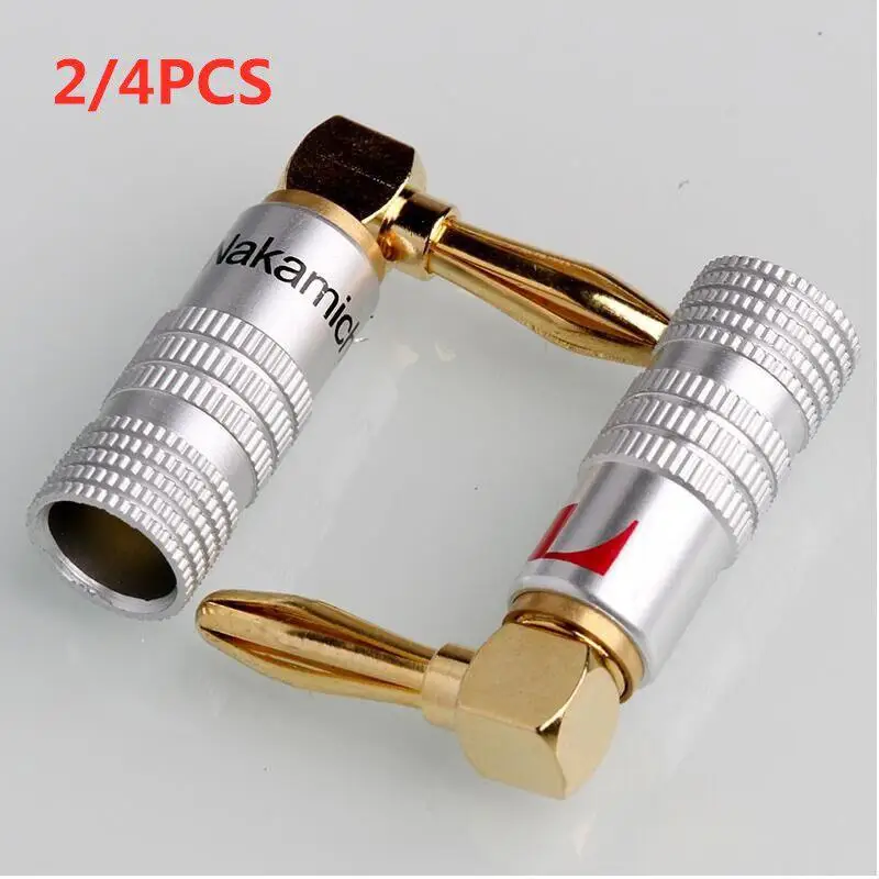 2/4 шт. 4 мм Nakamichi контрольные выводы вилки типа «банан под прямым углом 90 градусов с золотым напылением видео адаптер для динамиков аудио разъ...